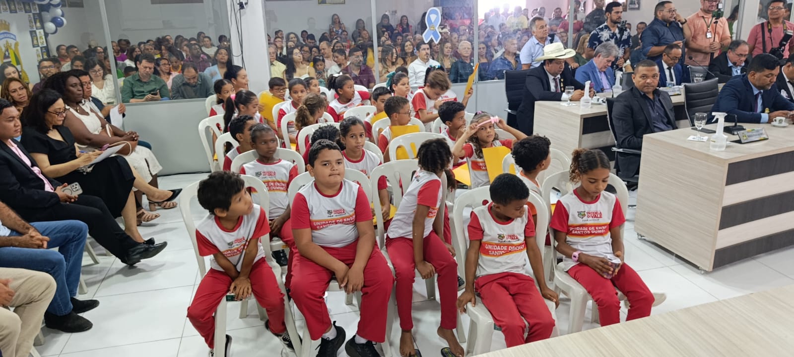 O plenário da Câmara ficou completamente lotado, e alunos da rede municipal de ensino também acompanharam o evento de perto, assistindo à Sessão ao lado dos vereadores — um gesto simbólico que reforça o respeito às instituições e o compromisso com o futuro da cidade.