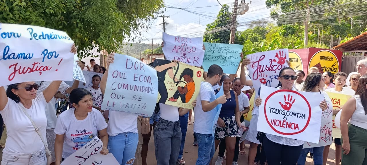 Na manhã desta segunda-feira (8), moradores do bairro Nova Pedreiras, familiares, amigos e colegas de escola do adolescente de 17 anos que denuncia ter sido espancado por um policial militar realizaram uma manifestação em apoio ao jovem. O ato reuniu dezenas de pessoas em uma caminhada marcada por cartazes, palavras de ordem e pedidos de justiça.